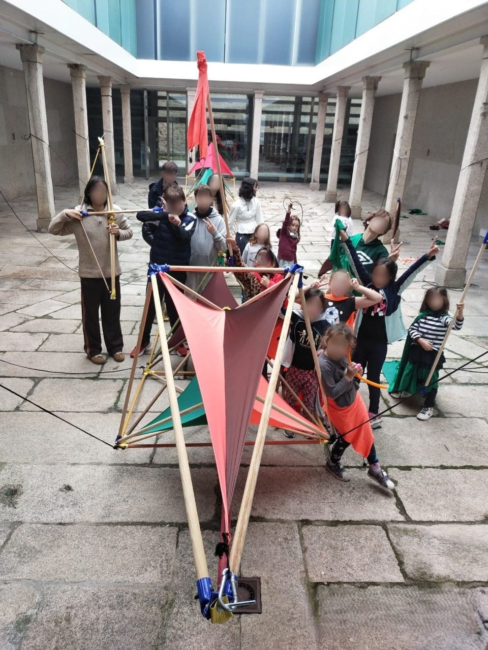 Dentro del programa de Nenoarquitectura se ha desarrollado el prototipo de la Miñoca, una instalación dinámica e interactiva. La figura se construye empleando el sistema Palitroques, en base a pirámides de base cuadrada unidas entre sí. El movimiento de la Miñoca se produce a través de un sistema de poleas que transmite el movimiento a lo largo de la estructura.