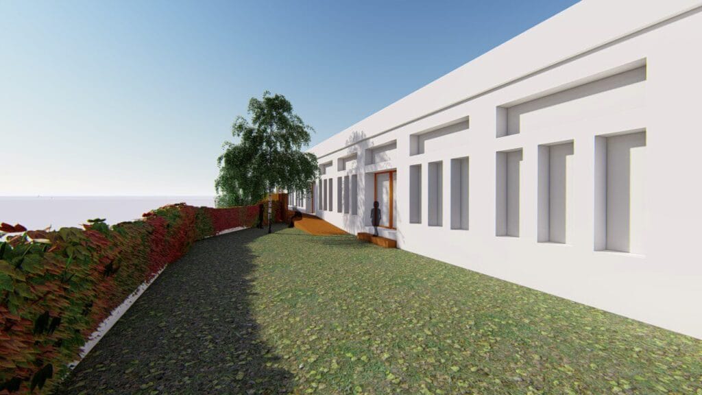 El proyecto entiende la educación como un proceso de formación permanente. Las fases de demolición fueron ejecutadas por el alumnado de una escuela taller en la que los participantes realizan las prácticas a través de esta actividad al tiempo que complementan su formación en técnicas de albañilería.