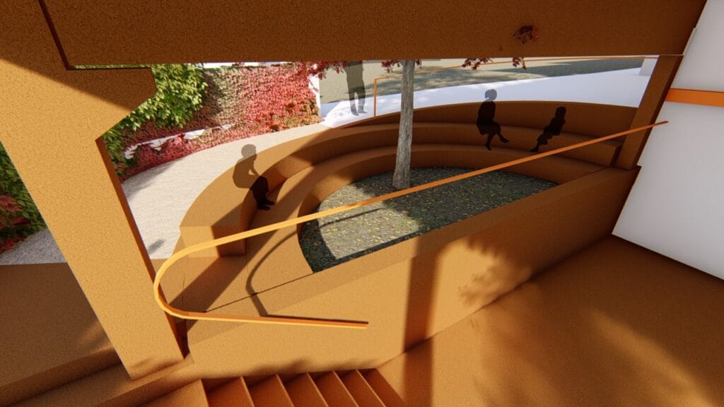 El vaciado en forma de cono expuesto en la casa del maestro tiene la finalidad de introducir a los alumnos en conceptos geométricos y matemáticos de una forma práctica y divertida. Las intersecciones del cono con los tabiques y forjados generan geometrías en forma de elipse, parábola o hipérbola.